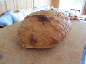 Du må følge litt med brødet, følge med kanskje stille ned temperaturen, eller legge noe over så det ikke blir brent, bare får en deilig skorpe. Tilsammen stekes brødet kanskje mellom 30 og 40 minutter.